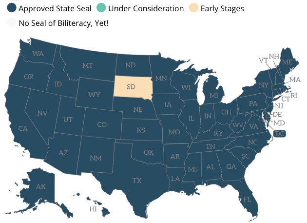 They explain,"The State Seal of Biliteracy movement has swept across the United States since it was first created in the State of California in 2011. Today, a majority of states offer a State Seal of Biliteracy to provide recognition for students who demonstrate proficiency in both English and a second language. However, in most states, private, charter, independent, college, and homeschoolers are not eligible to receive the Seal of Biliteracy. The Global Seal realizes the value of language credentials and was established to provide an opportunity for ALL language user and students to earn recognition for their language proficiency skills. The Global Seal of Biliteracy by design is inclusive, embracing all languages and learners, with the intent to provide equal access and expanded opportunity."